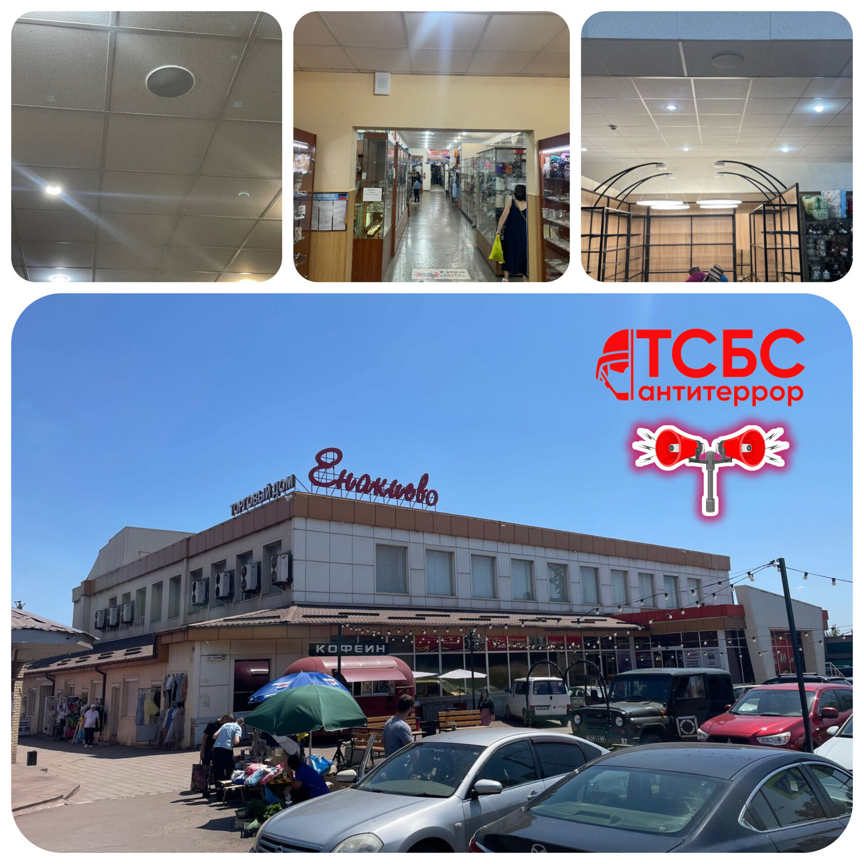 В здании и на уличной территории Торгового объекта равномерно распределены и установлены громкоговорители системы экстренного оповещения (СЭО), организовано рабочее место оператора системы, для повышения эргономичности использован выносной настольный микрофон типа "гусиная шея". Обеспечены слышимость и разборчивости транслируемой речи во всех местах, где находятся люди. Трансляционый микшер, используемый в качестве центрального блока речевого опрвещения, поддерживает воспроизведение аудиосигналов с USB-носителя или со смартфона по Bluetooth, также имеется возможность трансляции радио в режиме онлайн. Обеспечено резервное электропитание оборудования благодаря использованию ИБП с аккумуляторными батареями.